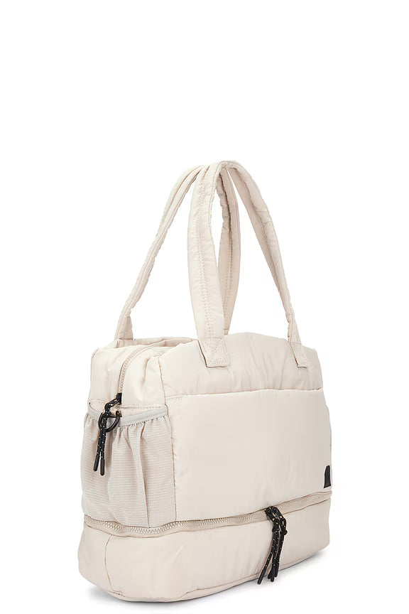 Ripstop exterior and interior. Made in China. Top zipper closure. One main compartment.Three interior slip pockets. Three exterior pockets with magnetic button closure.Dual mesh slip pockets at sides. Zippered compartment at base.Dual shoulder straps. Detachable and adjustable grosgrain logo shoulder strap. Measures approx 16" W x 11" H x 5.5" D.Shoulder strap with a 10" -20" drop.