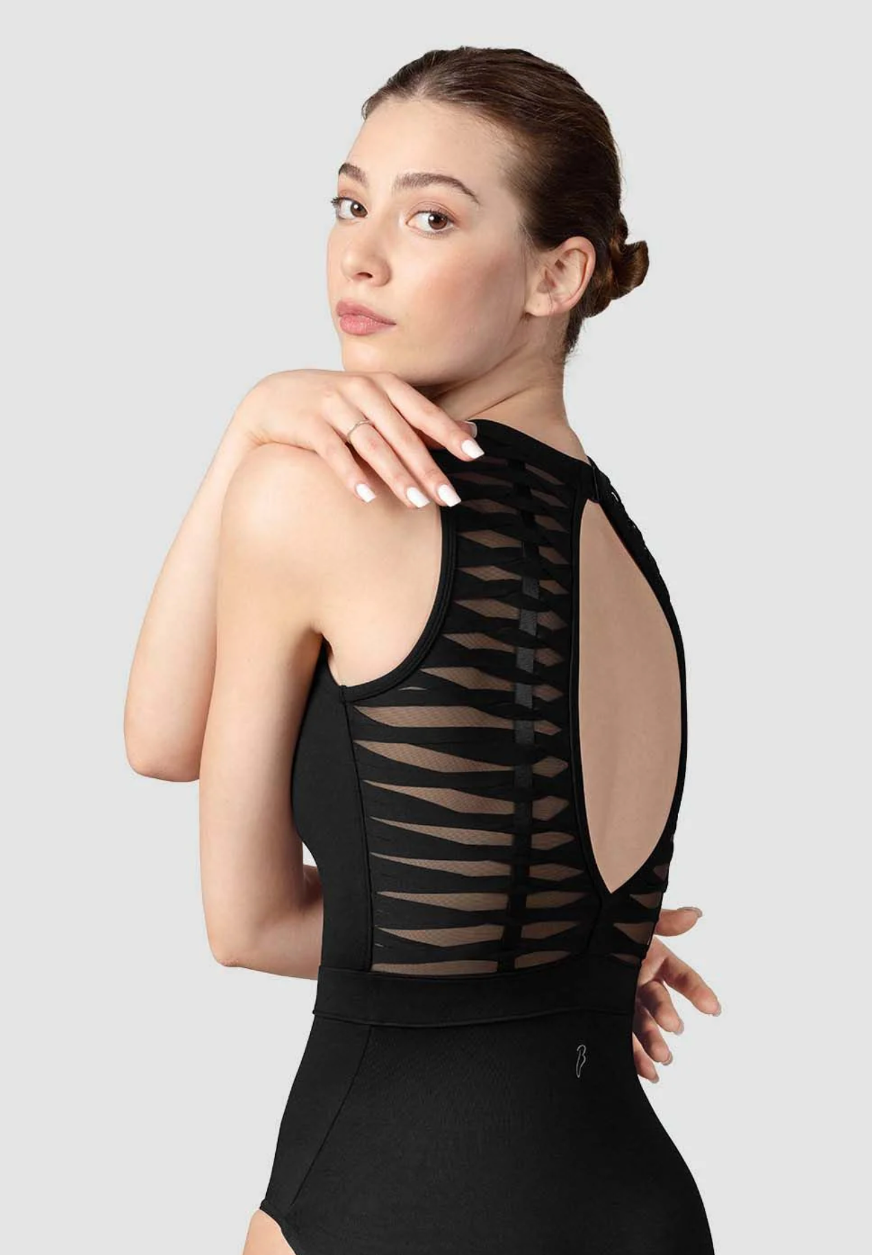 Our Ladies Leony Open Back Leotard features an elegant open back with intricate twist mesh panels, and a high neck with sweetheart detail. Our Bloch Entwined Collection features a contemporary twist on classic silhouettes. Beautifully fashioned with intricate woven twist details and soft mesh accents for a touch of elegance. Crafted from our signature performance fabric that moves effortlessly with you and available in classic black, grey and a striking peacock blue.