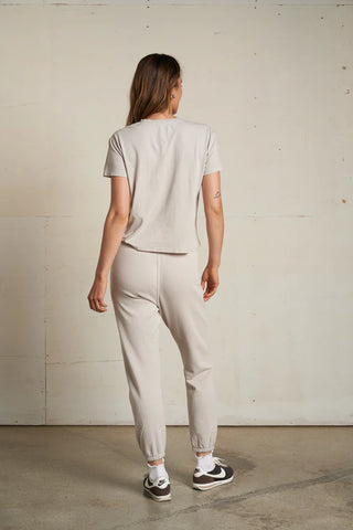 Hendrix Cotton Short Sleeve Boxy V Neck Tee - Suede | Perfect White Tee