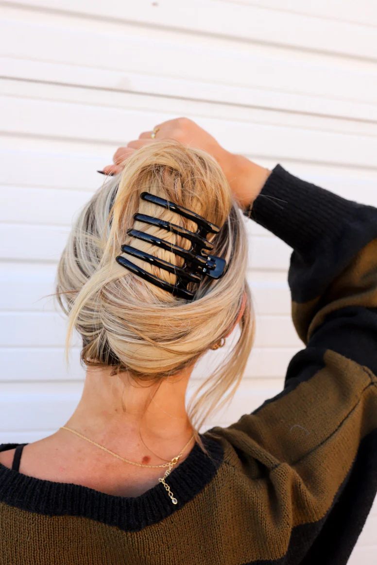 These claws are curved and can hold all your hair back without creasing it. They are unique, sturdy, and so stylish. ALSO added bonus that they are more flat than a normal claw, so you can pull your hair back in a 'claw style' and still be able to lay your head on the headrest when you drive, or lay down flat without it hurting your head!