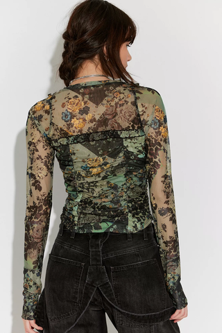 Electra Printed Blouse with Honeycomb Waist & Embroidery / Grape