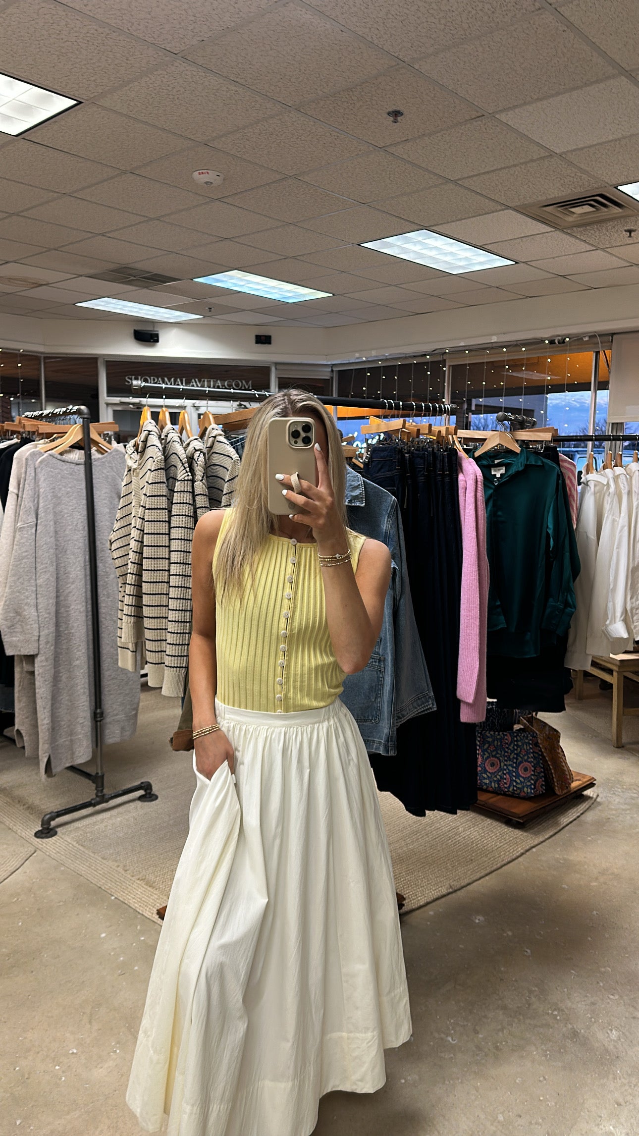 Elevate your everyday wardrobe with the Camilla Flared Midi Skirt in timeless off-white. This versatile piece features a graceful flared silhouette that flatters every figure, while practical side pockets keep your essentials within reach. The smooth lining ensures comfort and confidence with every wear. Perfect for transitioning from office to weekend, this midi skirt pairs effortlessly with everything from fitted tops to oversized sweaters. A wardrobe essential that combines style, function, and understated elegance.