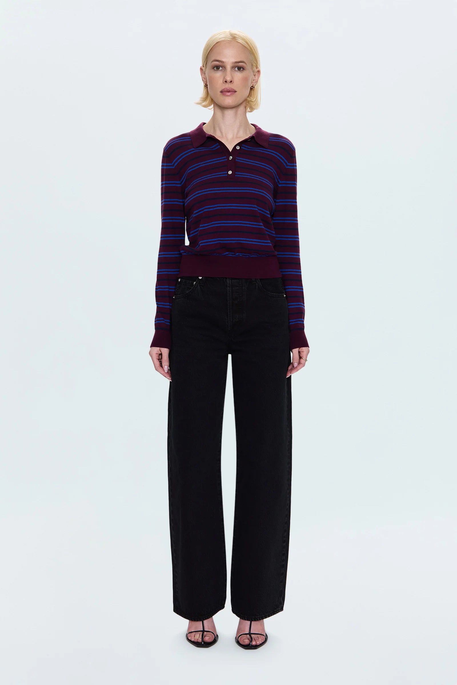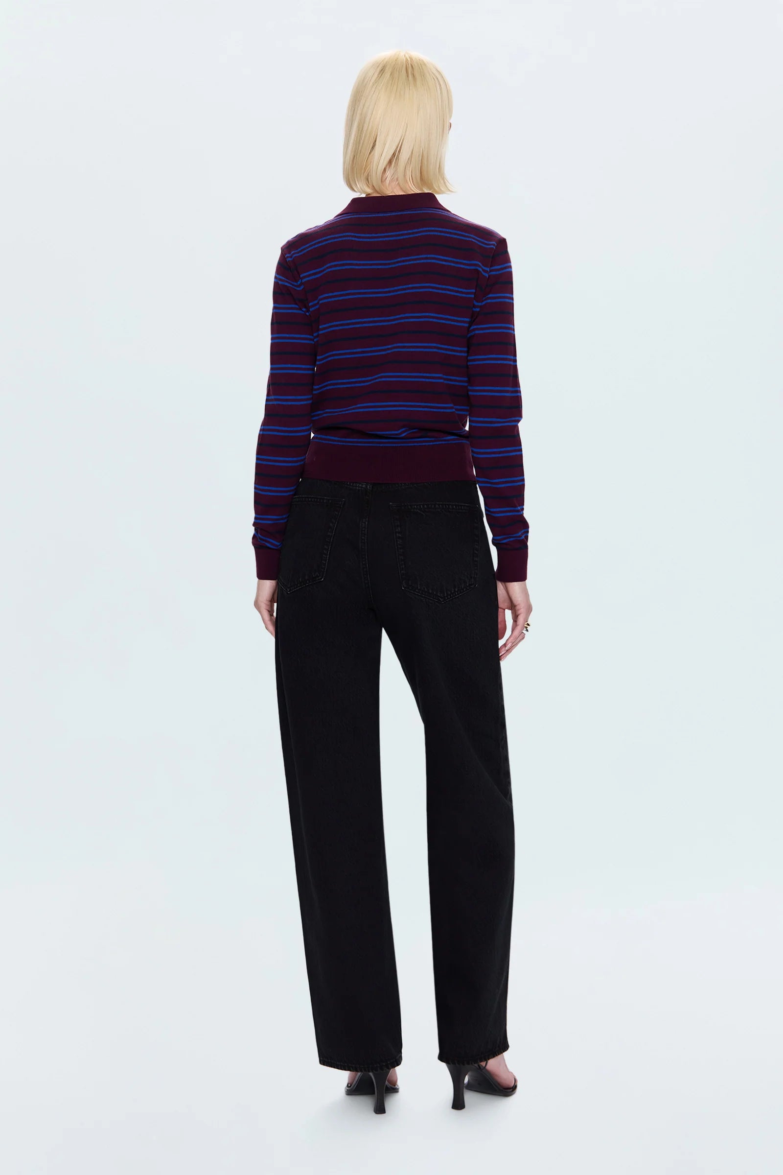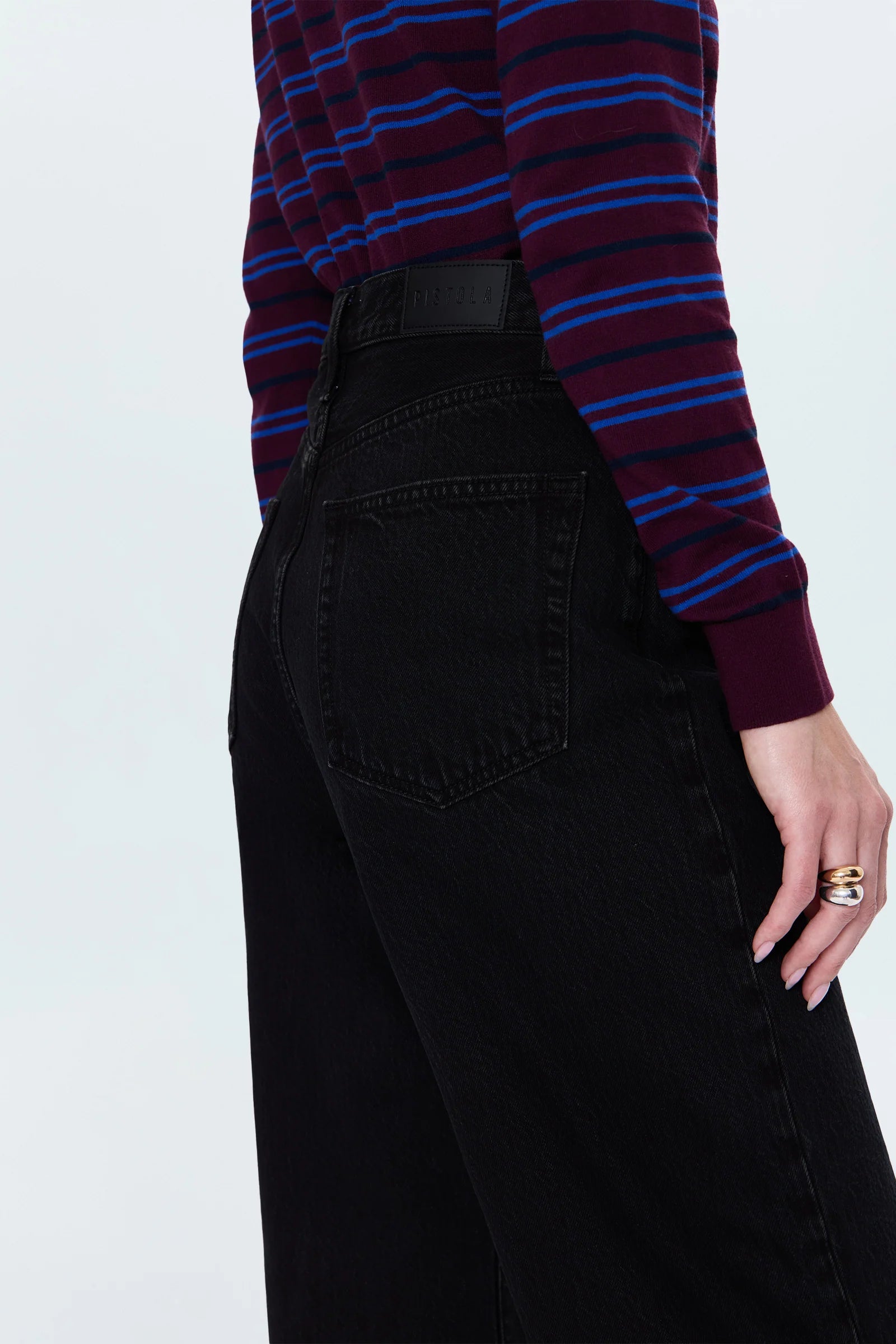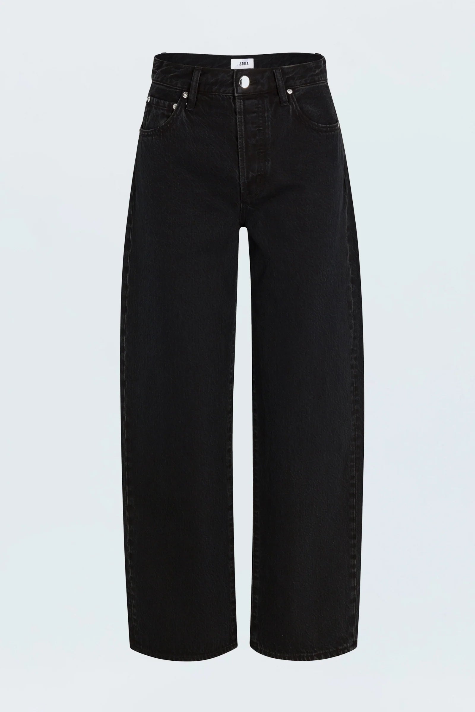Dark denim, finally done right. Tate sits at a high rise with our signature bowed wide leg silhouette and full-length 32" inseam that creates architectural drama. The subtle curve through the leg adds dimension while the wide opening brings modern proportion to any look. Crafted from 100% cotton non-stretch denim in Midnight Hour, a rich dark wash.