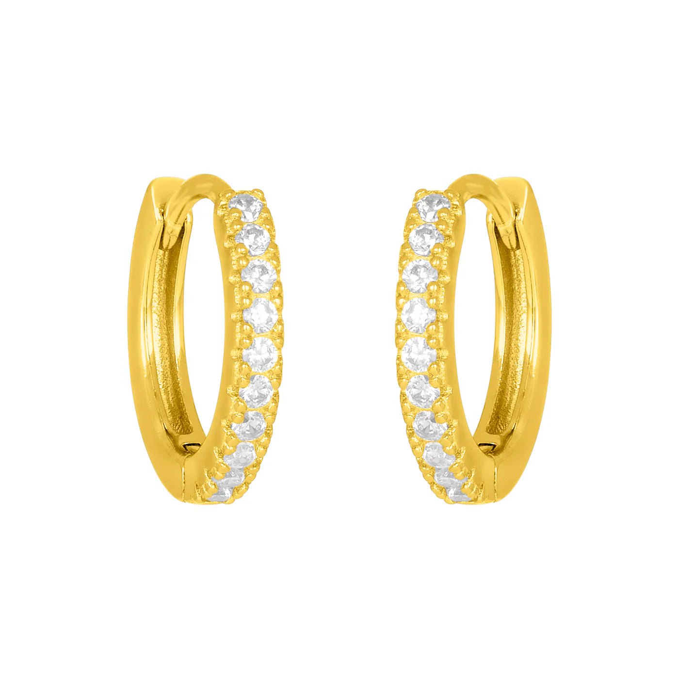 18k gold plated 925 sterling silver, cubic zirconia. Hypoallergenic.