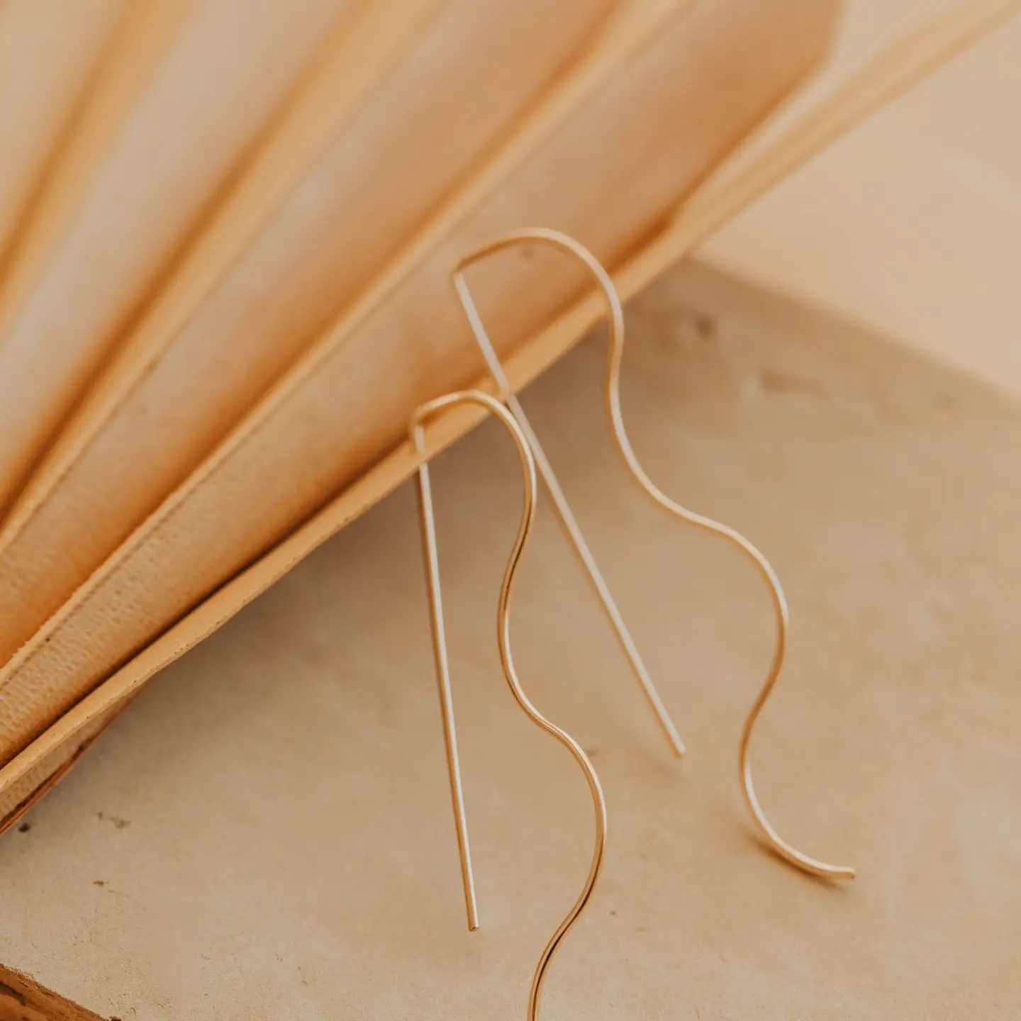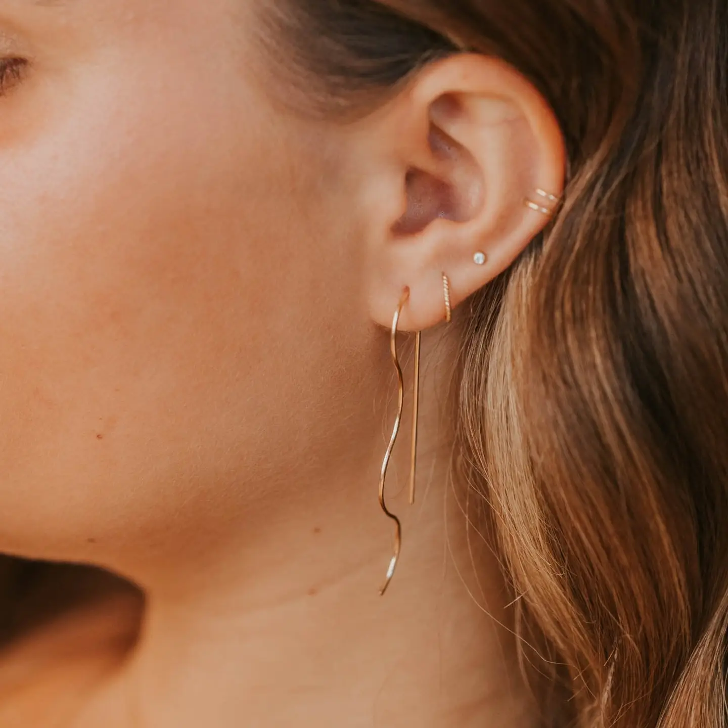 Hand-forged and hammered to catch the light just right, this threader knows no bounds when styled. It's safe to say we’re obsessed. * Measures approximately 2" long. * Sold as a pair. * Available in 14kt Gold Fill + Sterling Silver. * Handmade in Eau Claire, WI. * The gauge of these earrings is 18g which is slightly thicker than the average ear wire. They will fit most piercings but may be uncomfortable for very sensitive ears. Our jewelry is handmade so each piece will be unique and may vary slightly from what is pictured.
