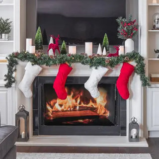 Chunky Checkered Knit Christmas Stockings Red