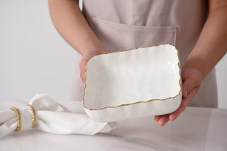 Gold Rimmed 8” x 8” Square Porcelain Baking Dish