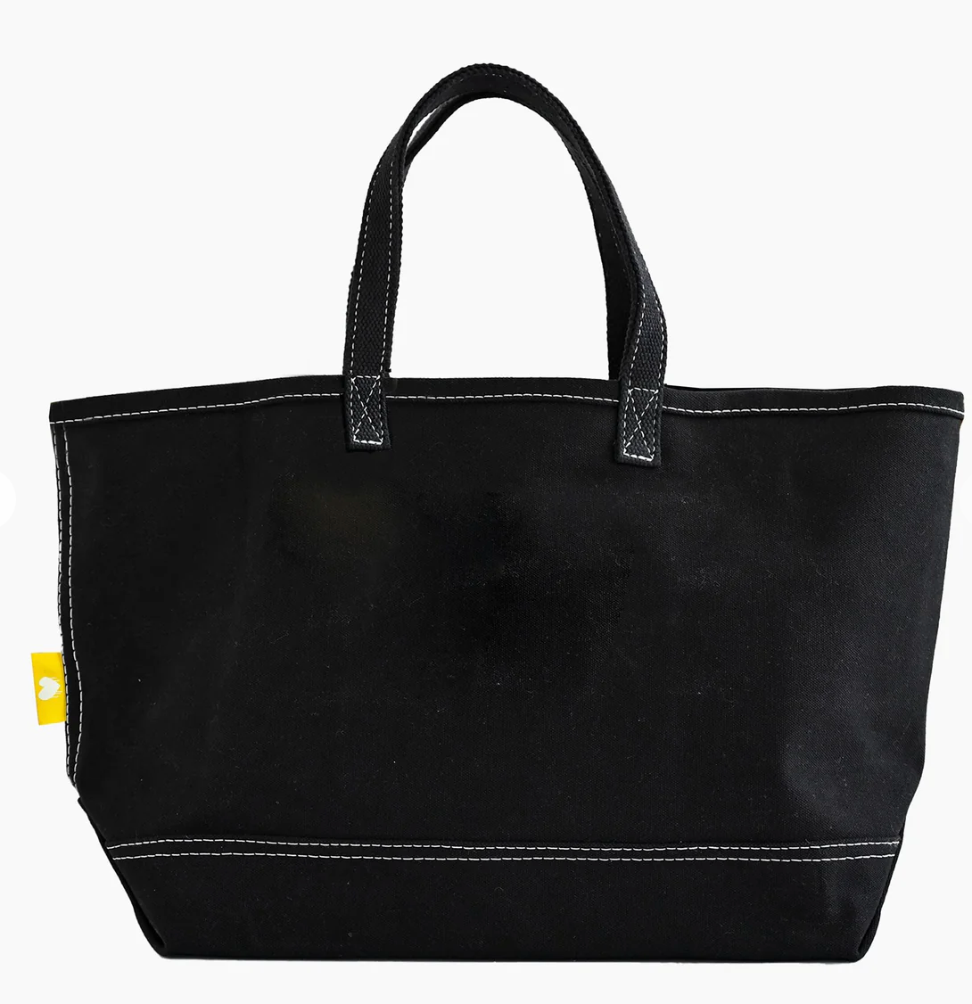 The Imperfect Heart Tote is a classic Kerri piece. This black canvas tote is gently structured & comes with an Imperfect Heart bag charm.  You'll comfortably fit your laptop, spare flats and cosmetics pouch inside.