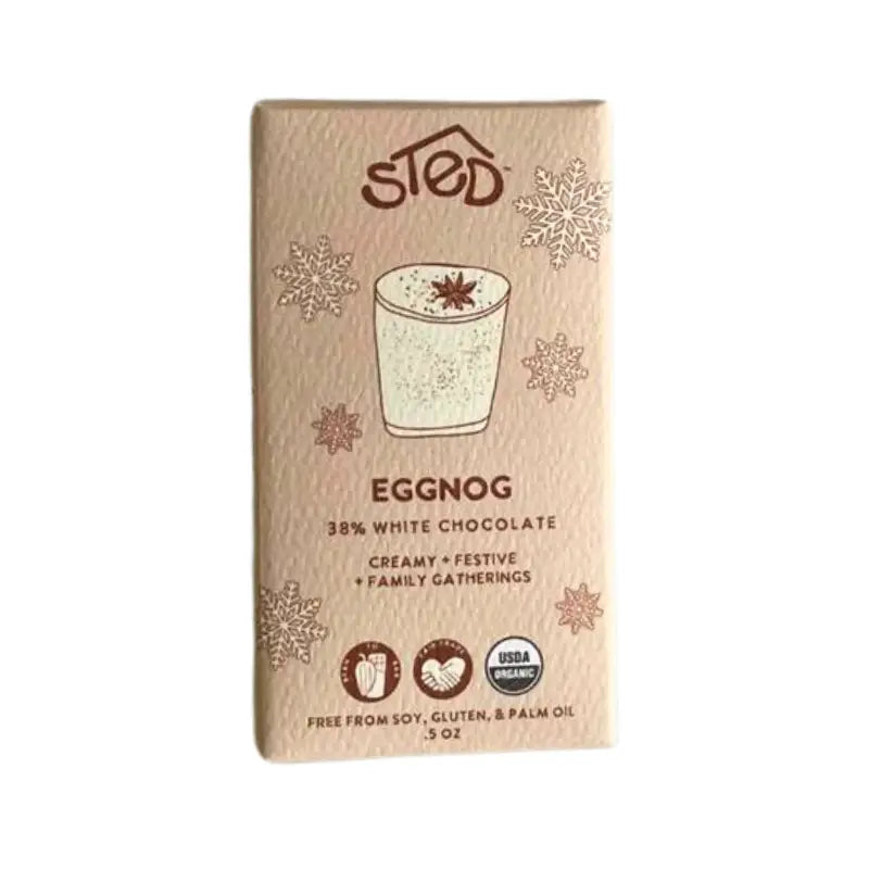 This bar is an experience of holiday joy. Creamy indulgence meets festive delight as notes of nutmeg and vanilla dance through velvety sweetness, capturing the essence of the season in every blissful bite. This is a limited-edition, seasonal bar, only available in our .5oz mini size bars and while they last!