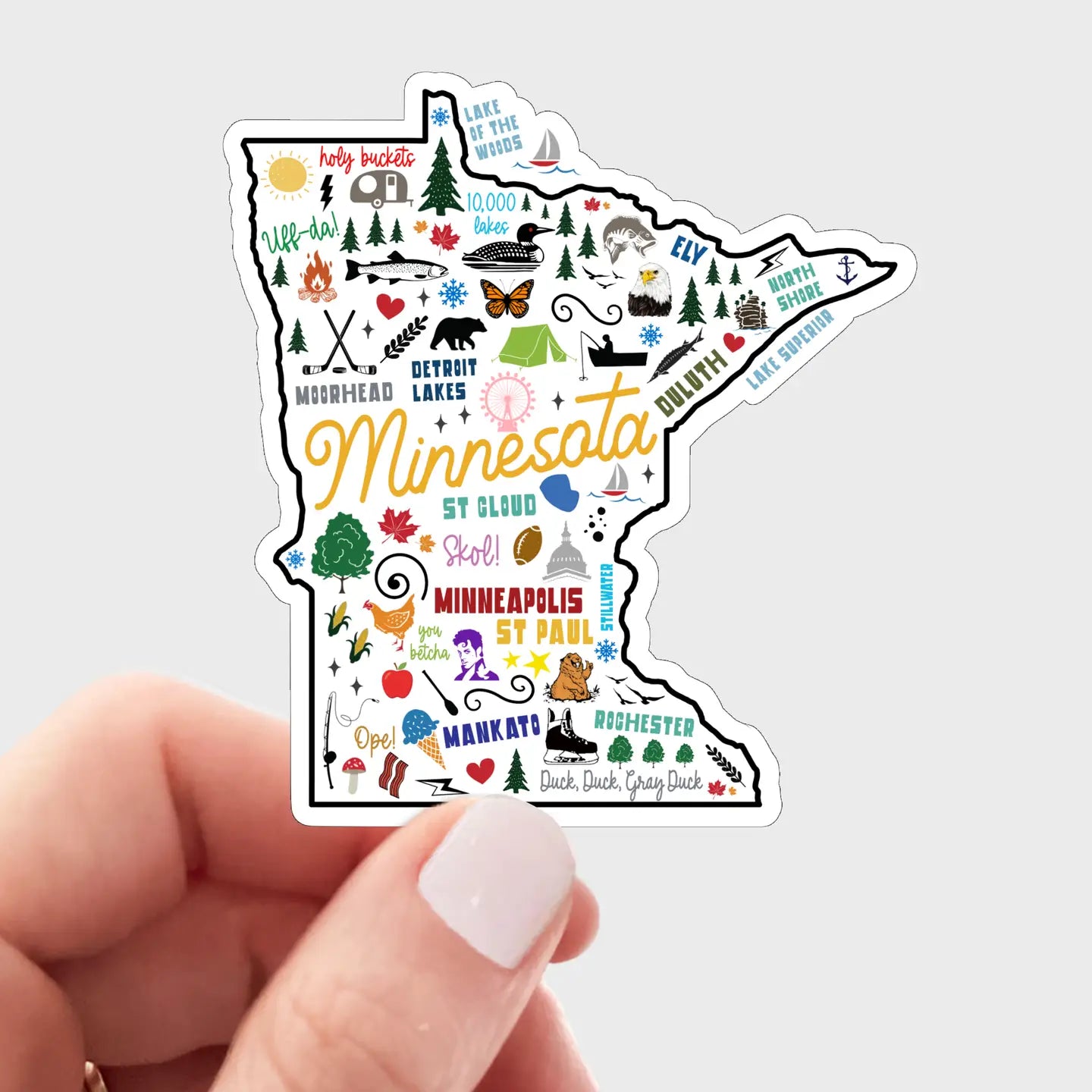 Enhance your belongings with our Minnesota Map Sticker, crafted from premium heavy-duty vinyl that’s both scratch and weather resistant. Measuring 2.76"x3", this durable decal withstands dishwasher cycles and outdoor elements, making it ideal for laptops, cars, water bottles, and more. Its vibrant design adds personality while providing reliable protection, helping you showcase your love for Minnesota everywhere you go.