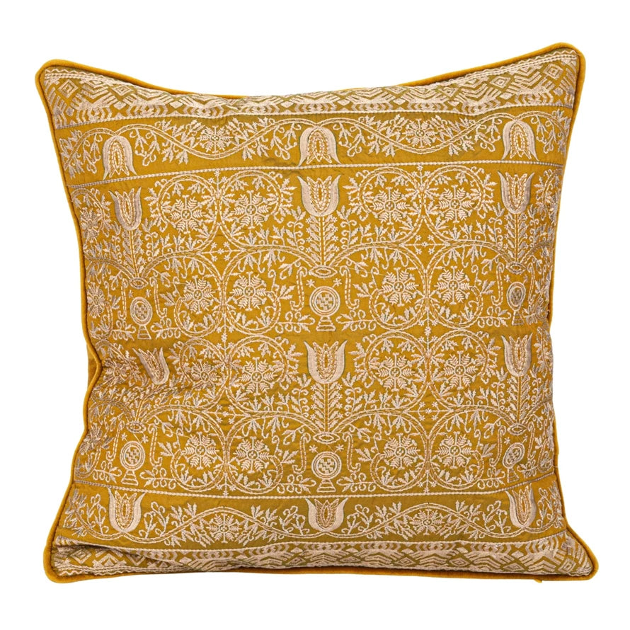 Add a vibrant touch to your living space with this 18" square cotton velvet pillow in sunny yellow. The intricate embroidered design adds texture and elegance, while the soft velvet fabric ensures comfort. Perfect for brightening up sofas, chairs, or beds, this pillow effortlessly combines style and coziness to enhance any room.