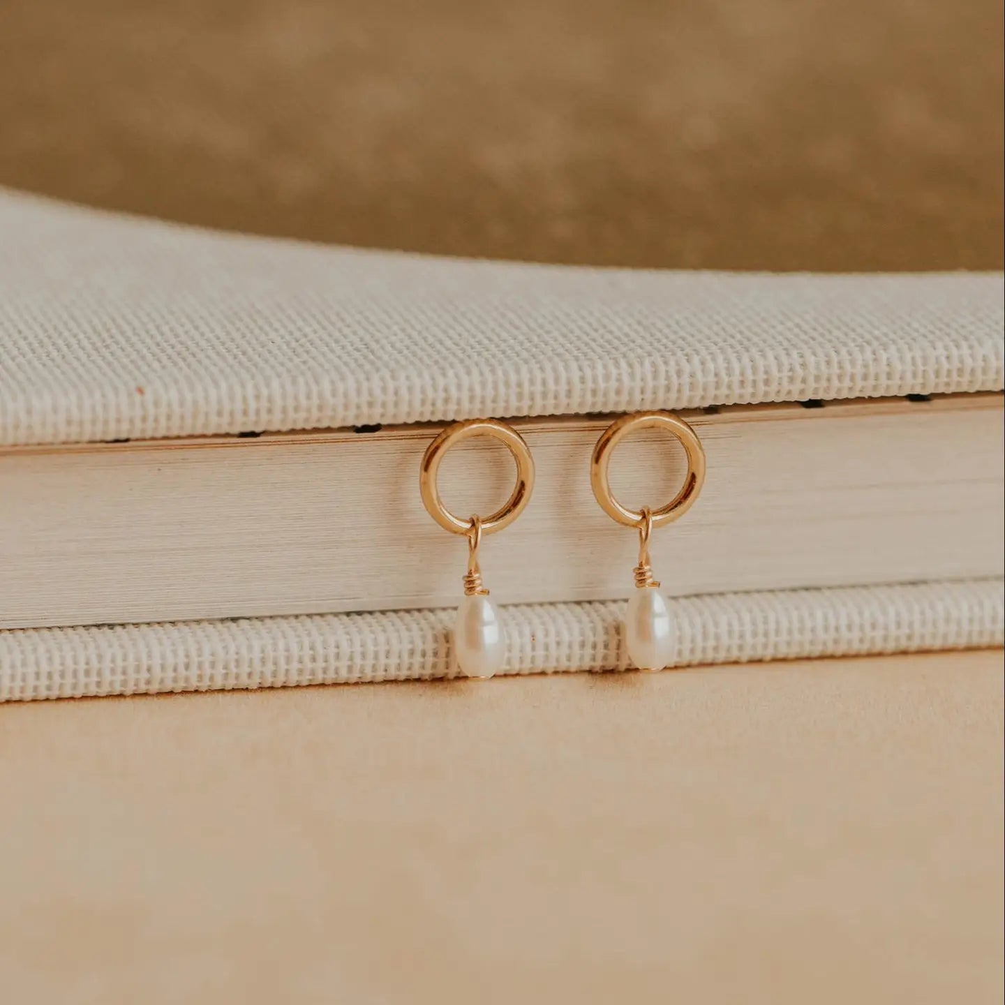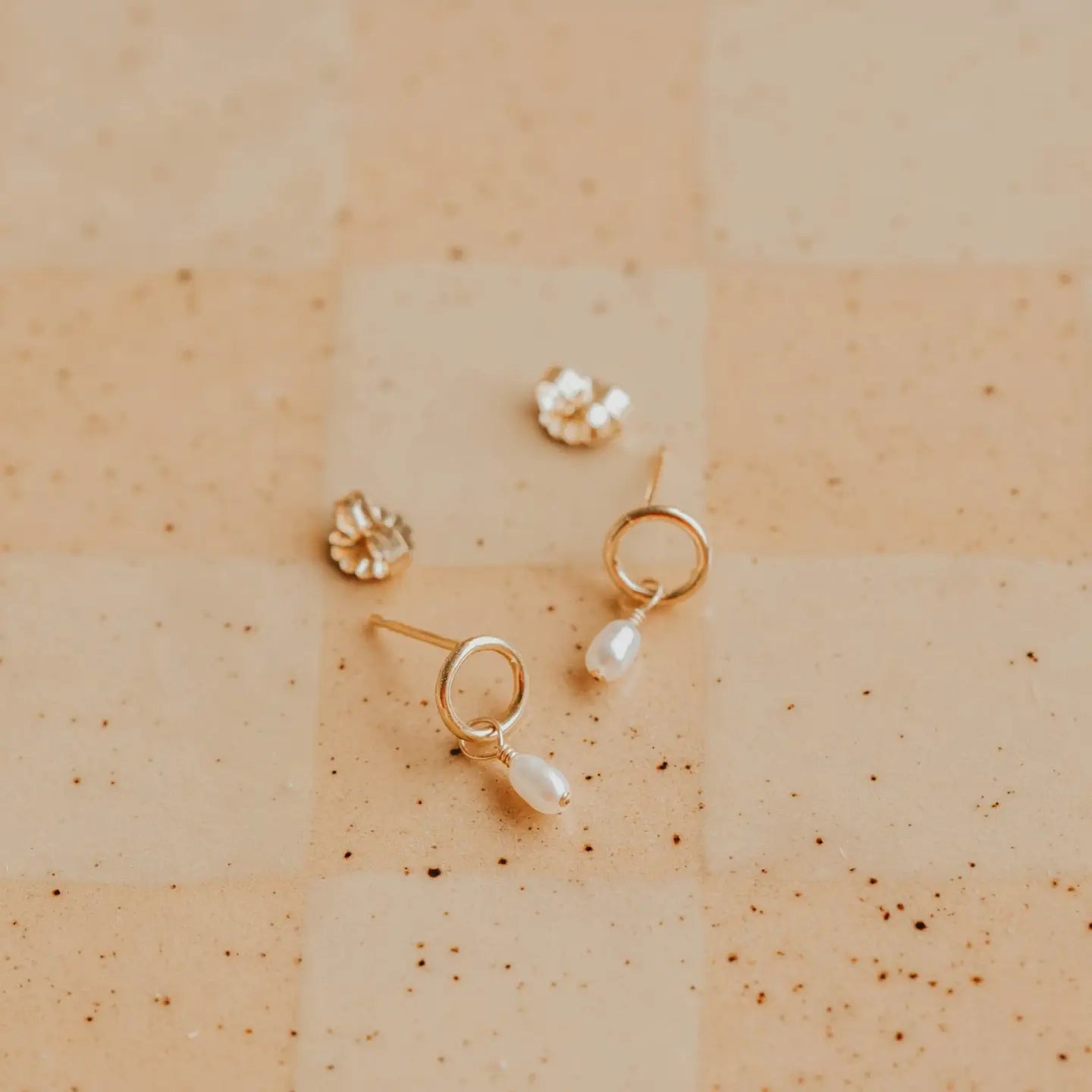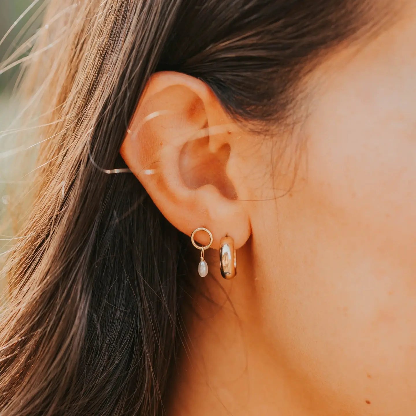 Dainty but eye-catching, the pearls on these earrings have the perfect swing, creating a truly captivating and eye catching piece. * Sold as a pair. * Available in 14kt Gold Fill + Sterling Silver. * Handmade in Eau Claire, WI. Our jewelry is handmade so each piece will be unique and may vary slightly from what is pictured.