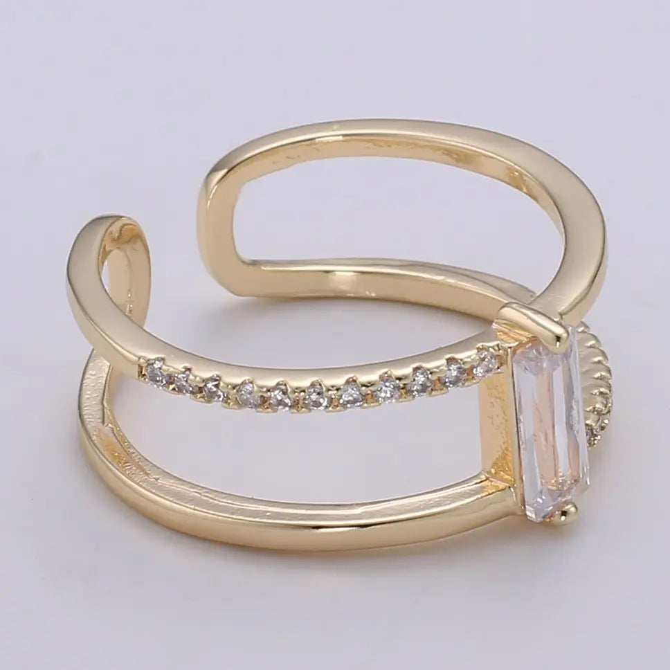 Juliet Gold Double Band Baguette CZ Adjustable Ring