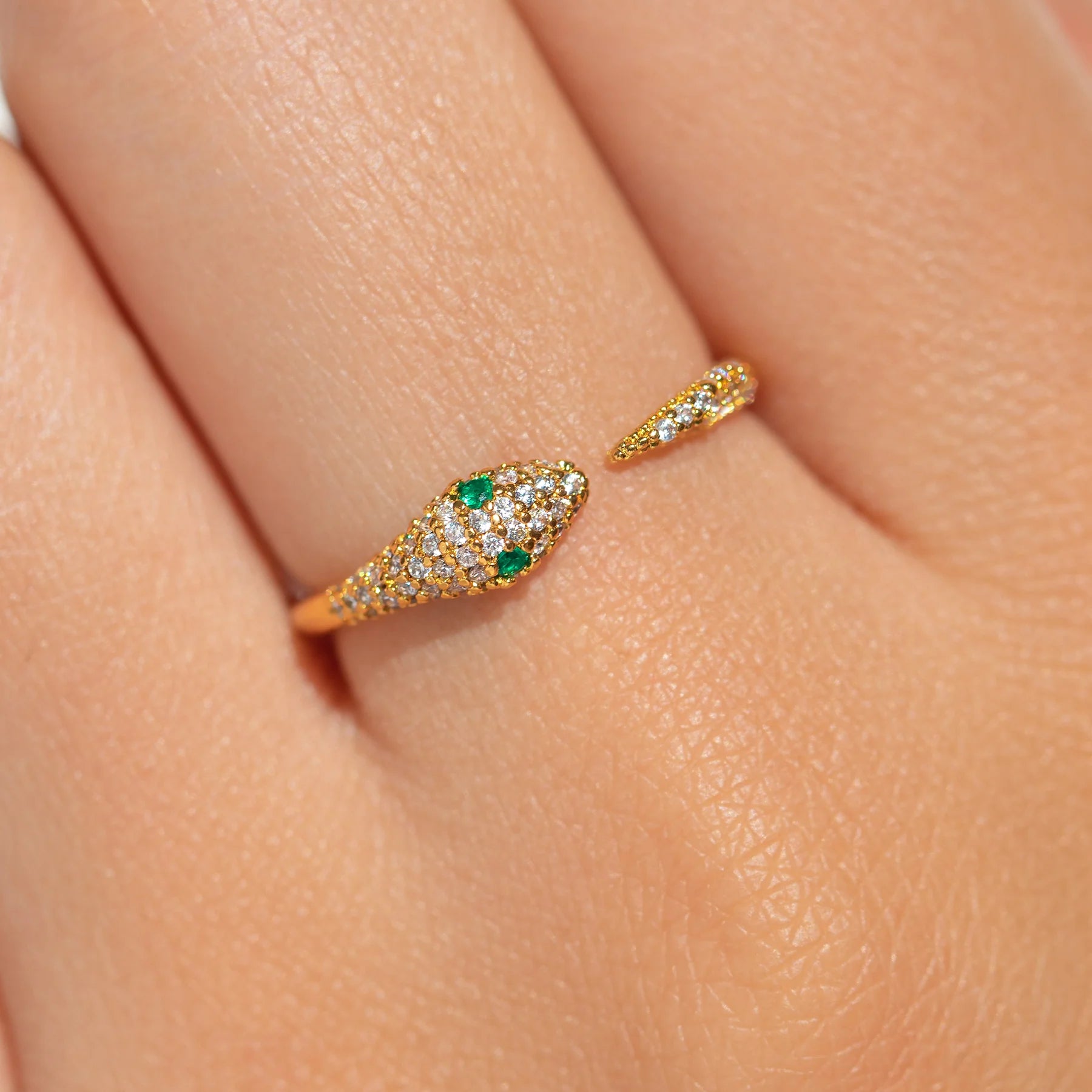 Add some bite to your look in the Viper Snake Ring. We love the pop of emerald and know these will be a standout ring to add to your collection!