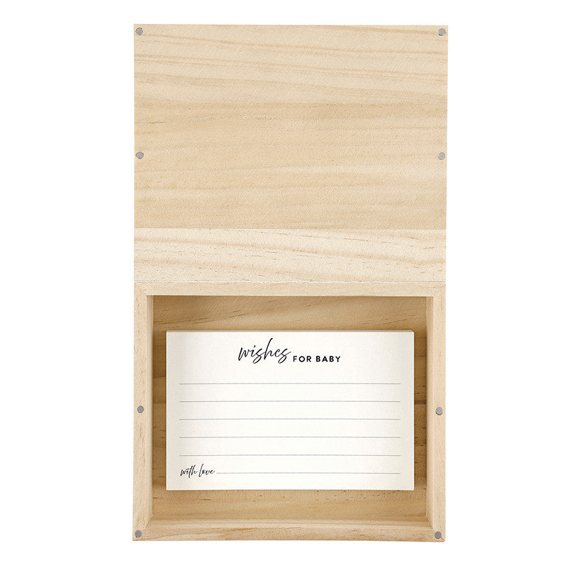Share Little Loves notes with baby with this thoughtful keepsake letter box. Complete with note cards for writing heartfelt messages, this box is designed to store notes for baby from loved ones near and far, creating a timeless collection of memories to treasure.