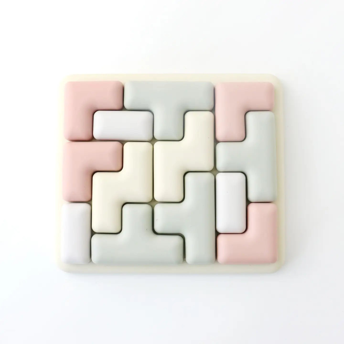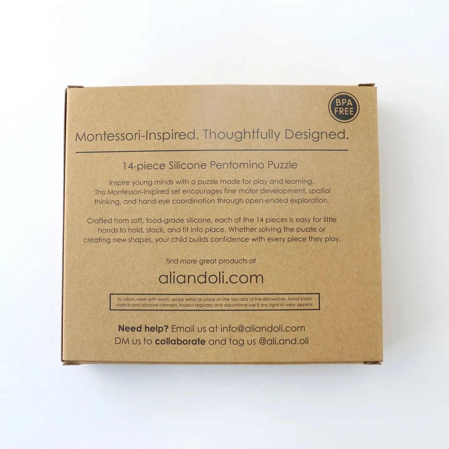 Make learning playful with our Silicone Pentomino Puzzle Board, a Montessori-inspired toy designed to spark creativity and problem-solving. Entirely crafted from soft, food-grade silicone, this durable puzzle is safe for little hands and built for endless play. With soothing pastel tones and a pegboard-style base, children can practice logic, shape recognition, and hand–eye coordination while creating endless combinations. The lightweight yet sturdy design makes it easy to bring along for travel, quiet playtime, or family activities. Product Details: Dimensions: 6.1 in × 5.4 in × 0.8 in (15.5 cm × 13.7 cm × 2 cm) Weight: 7.7 oz (218.6 g) Material: 100% food-grade silicone Recommended Age: 3+ years Colors: Neutral pastel palette Key Benefits: ✔ Encourages logical thinking, creativity, and concentration ✔ Strengthens fine motor skills and spatial awareness ✔ Made entirely of soft, safe, dishwasher-safe silicone ✔ Compact and portable for at-home or on-the-go play A modern twist on a classic puzzle—beautiful, practical, and designed for little learners ages 3 and up.