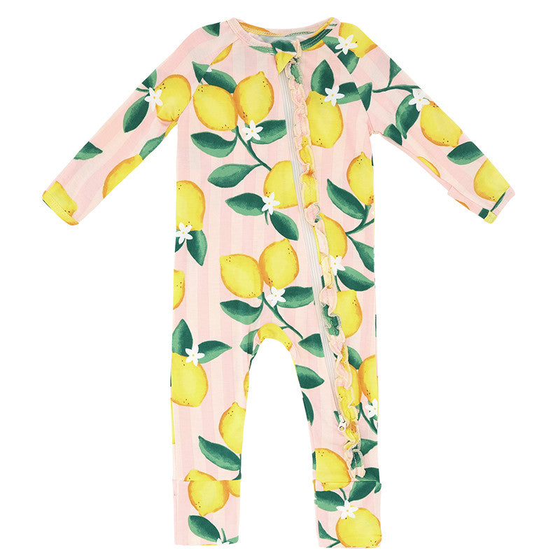 Dress your little one in this cozy romper made from a super soft bamboo blend fabric. The playful lemon print adds a fresh, cheerful touch while keeping baby comfortable for everyday wear or special occasions.