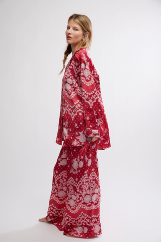 Luxe Milk Jersey Piped Short Sleeve Pant Set - Teaberry | Barefoot Dreams