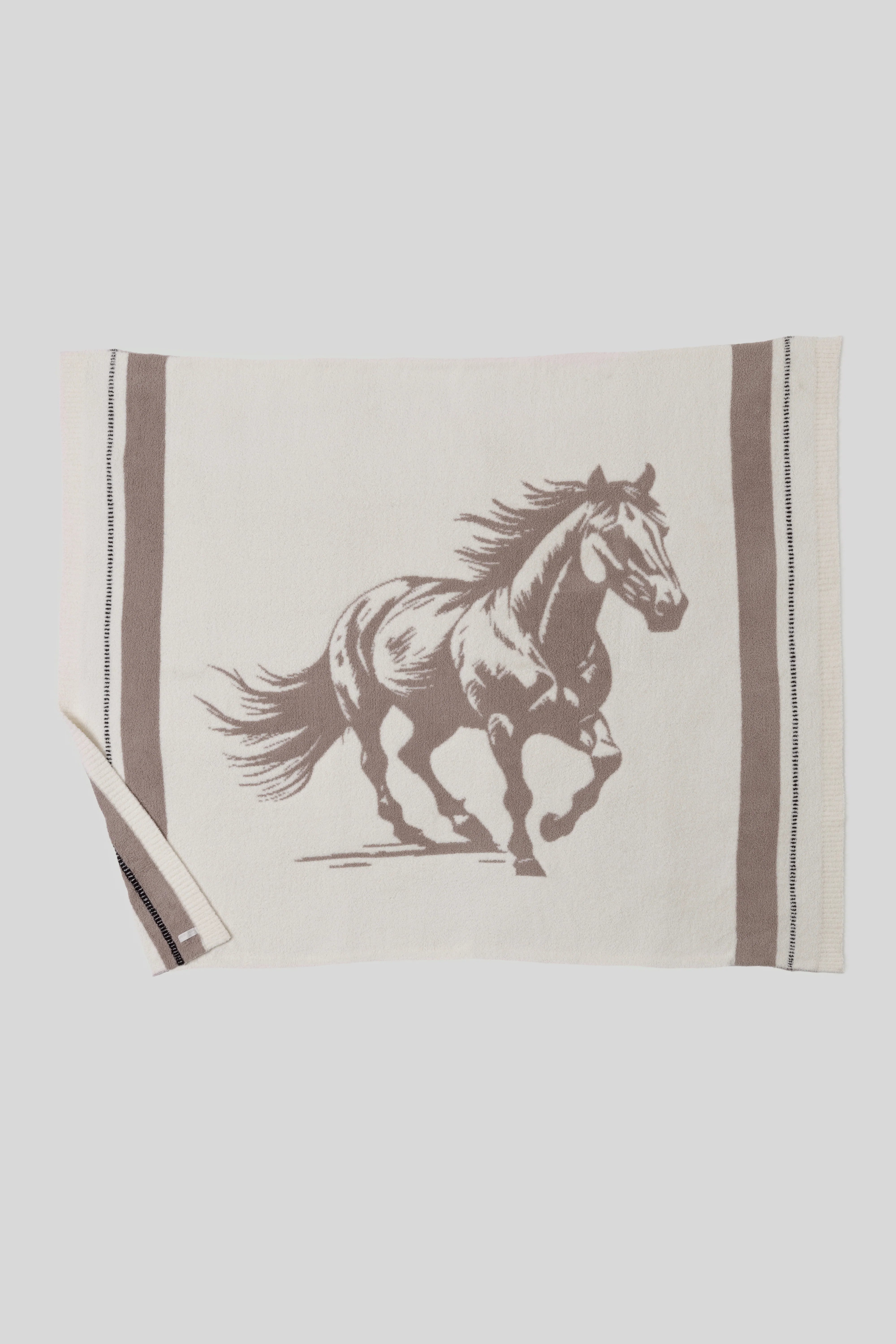Add a bold yet refined accent to your space with our CozyChic® Stallion Throw, where artistry and comfort meet in stunning silhouette. Knitted in luxurious jacquard, this throw features a striking stallion figure framed by graphic block stripes and subtle dashed line details at both ends. Perfect for equestrian lovers or those seeking a unique statement piece, the throw is finished with ribbed hems and crafted from our famously soft CozyChic® fabirc. Measures 54" x 72". Imported.