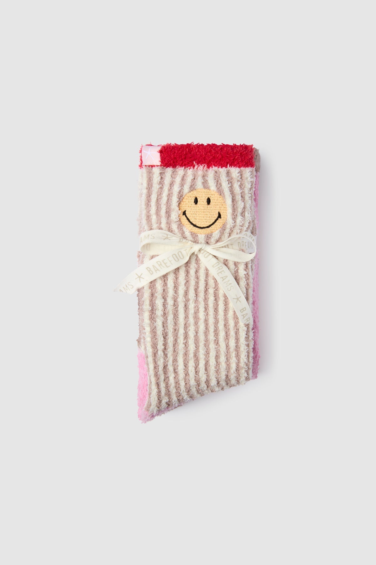 Step into comfort with the CozyChic® Smiley® Ribbed Sock Set, a playful duo designed to brighten your day from the ground up. This 2-piece set includes two distinct yet complementary styles, each crafted with our signature cozy softness and cheerful details. One sock features a solid ground color with contrast heel and toe, finished with a subtle stripe detail at the sock opening, plus an embroidered smiley face at the side for a fun pop of personality. While the other sock features a vibrant stripe jacquard knit with a contrast heel and toe and the same stripe detail at the opening, also accented with the iconic smiley face embroidery. Perfect for lounging, gifting, or adding a little joy to your everyday wardrobe, these socks blend cozy comfort with playful style. Imported.