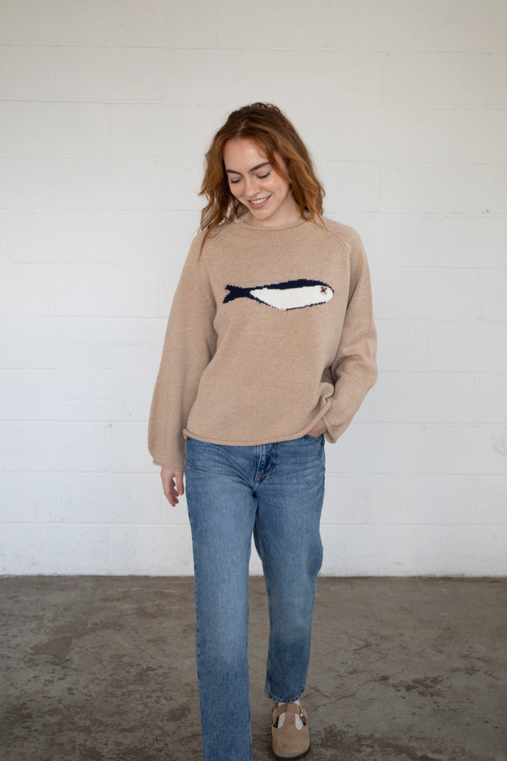 Balloon sleeve sweater with a rolled-knit neckline.