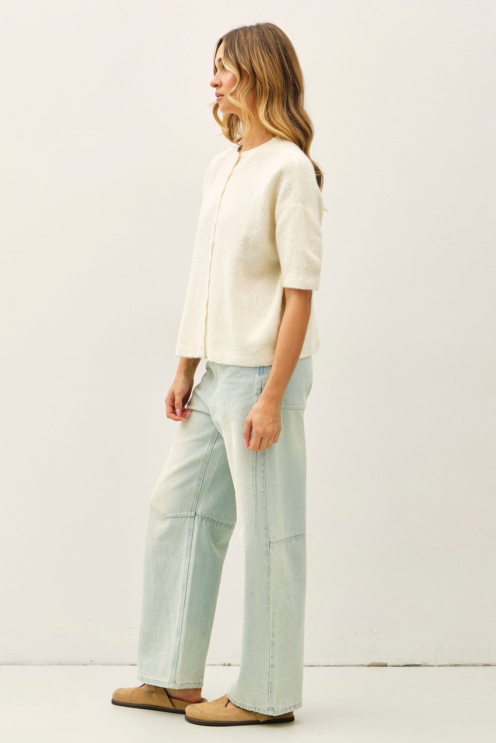 Elevate your everyday wardrobe with the Sophia Ribbed Button Down Cardigan in timeless ivory. This versatile layering piece features a refined ribbed texture that adds subtle dimension while maintaining a polished, sophisticated look. The classic button-down design pairs effortlessly with everything from casual tees to dresses, making it an essential staple for year-round styling. Soft, comfortable fabric moves with you throughout your day, while the neutral ivory shade complements any color palette. Whether you're dressing up or keeping it casual, this cardigan delivers both style and practicality.