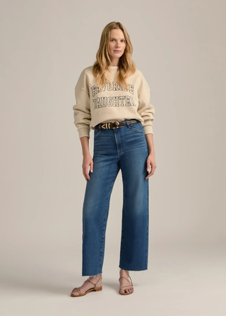 The Cropped Collegiate Sweatshirt - French Oak/Snow White | Favorite Daughter