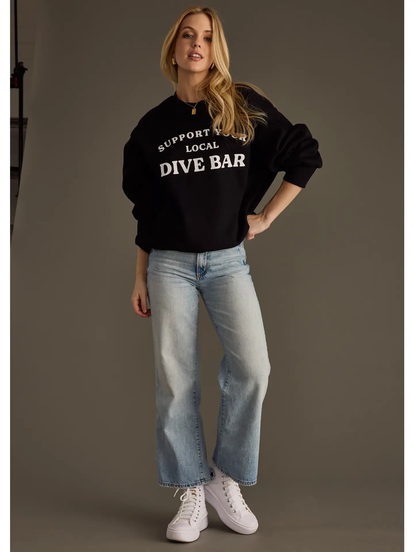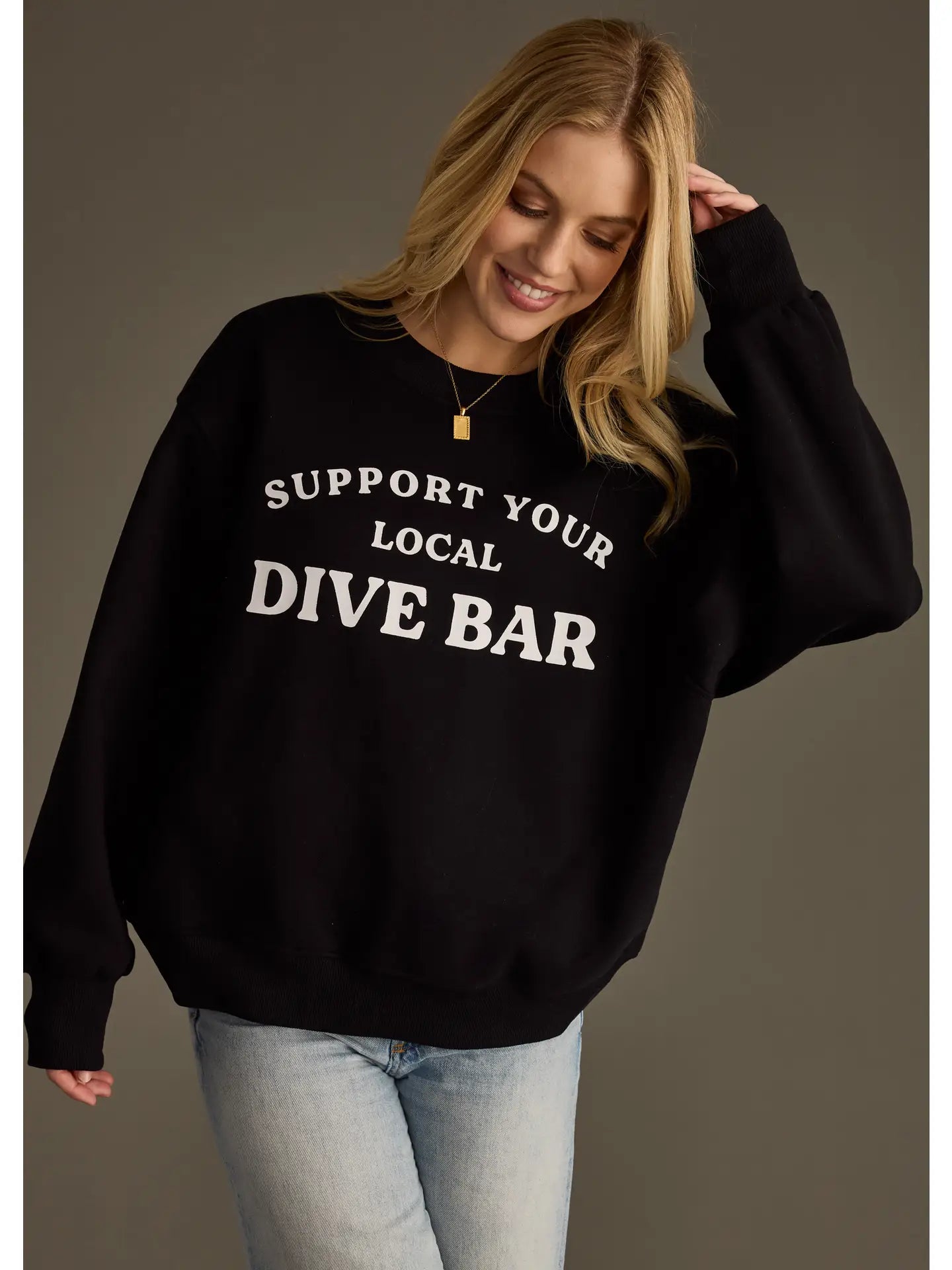 Celebrate the heart of your community with this classic black sweatshirt that pays homage to dive bars everywhere. Perfect for locals and bar enthusiasts alike, this comfortable pullover makes a statement while keeping you cozy. Whether you're heading out for a night with friends or just running errands, wear your support proudly. A wardrobe essential that sparks conversation and shows where your loyalty lies.