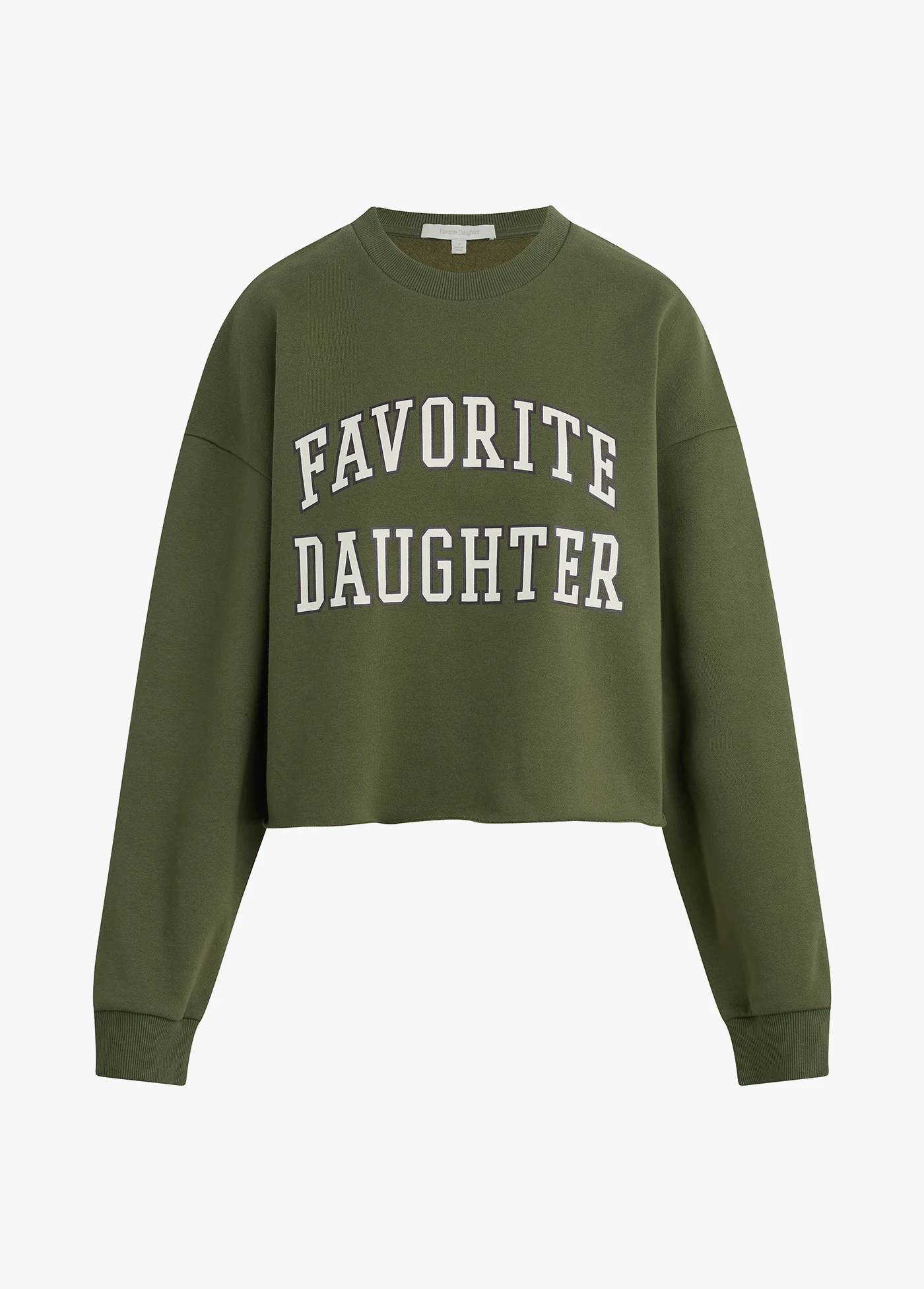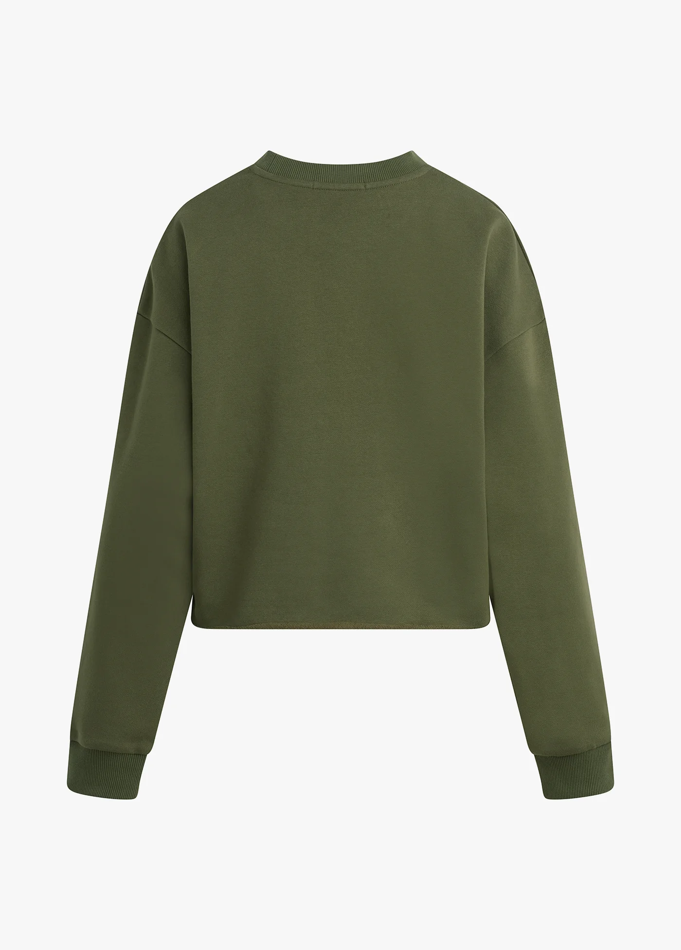Give it the old college try with our cropped collegiate sweatshirt. With the drop shoulder and relaxed fit, this collegiate classic will go to the head of the class (and your closet).