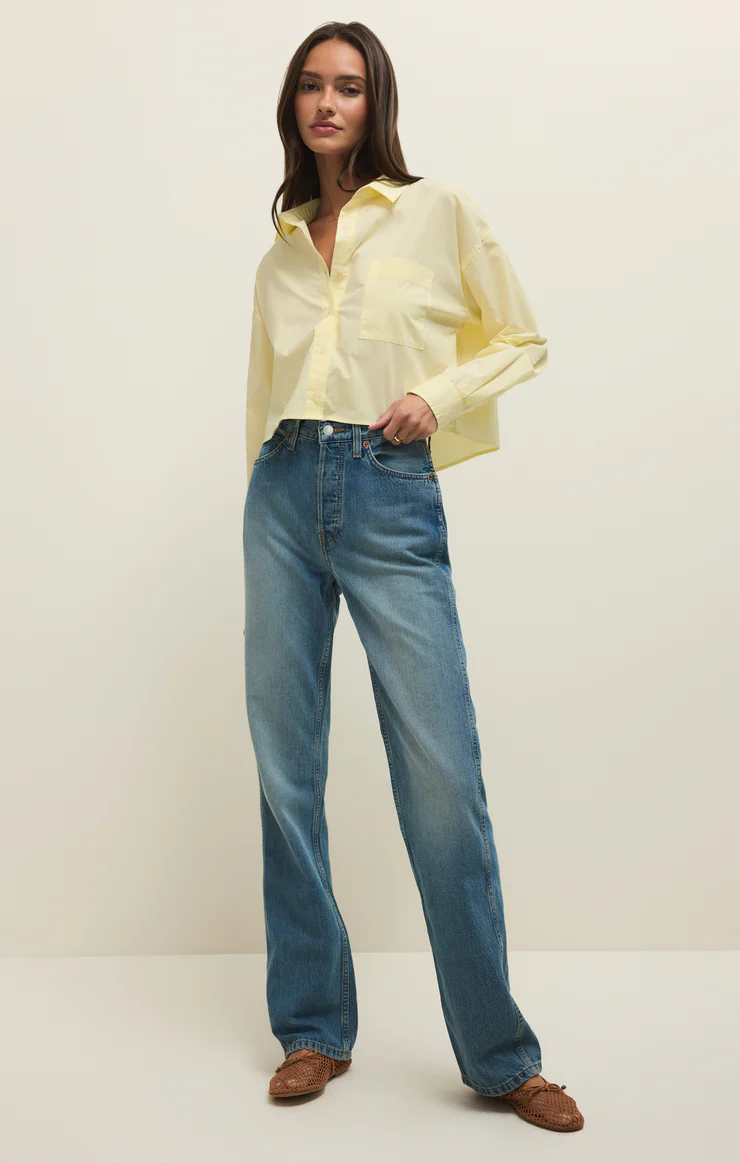 Crisp and lightweight, this cotton poplin button-up instantly elevates any outfit. Designed with a meet-and-greet fit and straight hemline, it feels modern and easy to style with denim, skirts, or tailored pants for a refined everyday look.