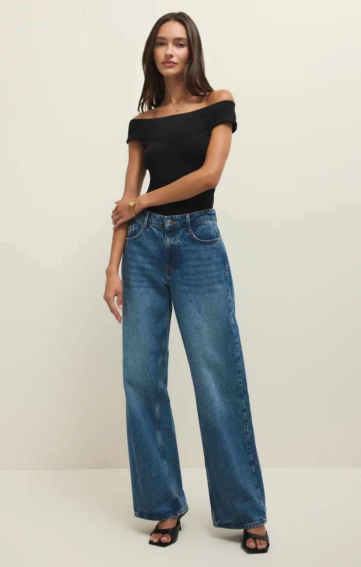 Soft, smooth, and body-hugging, this off-shoulder top flatters with just the right amount of stretch. Made from our signature Second Skin rib fabric, it’s the perfect piece to dress up or pair with denim for an easy casual look.