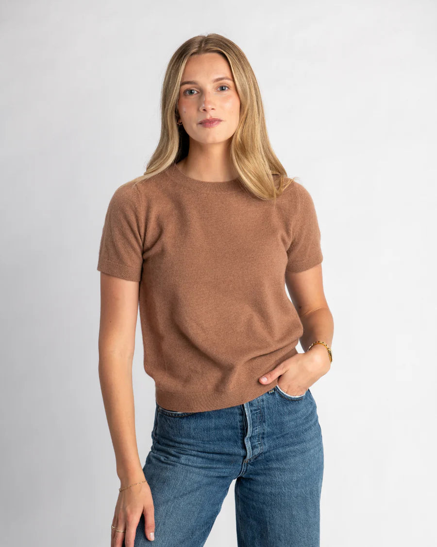 Short sleeves and soft cashmere bring elevated ease to a timeless tee.