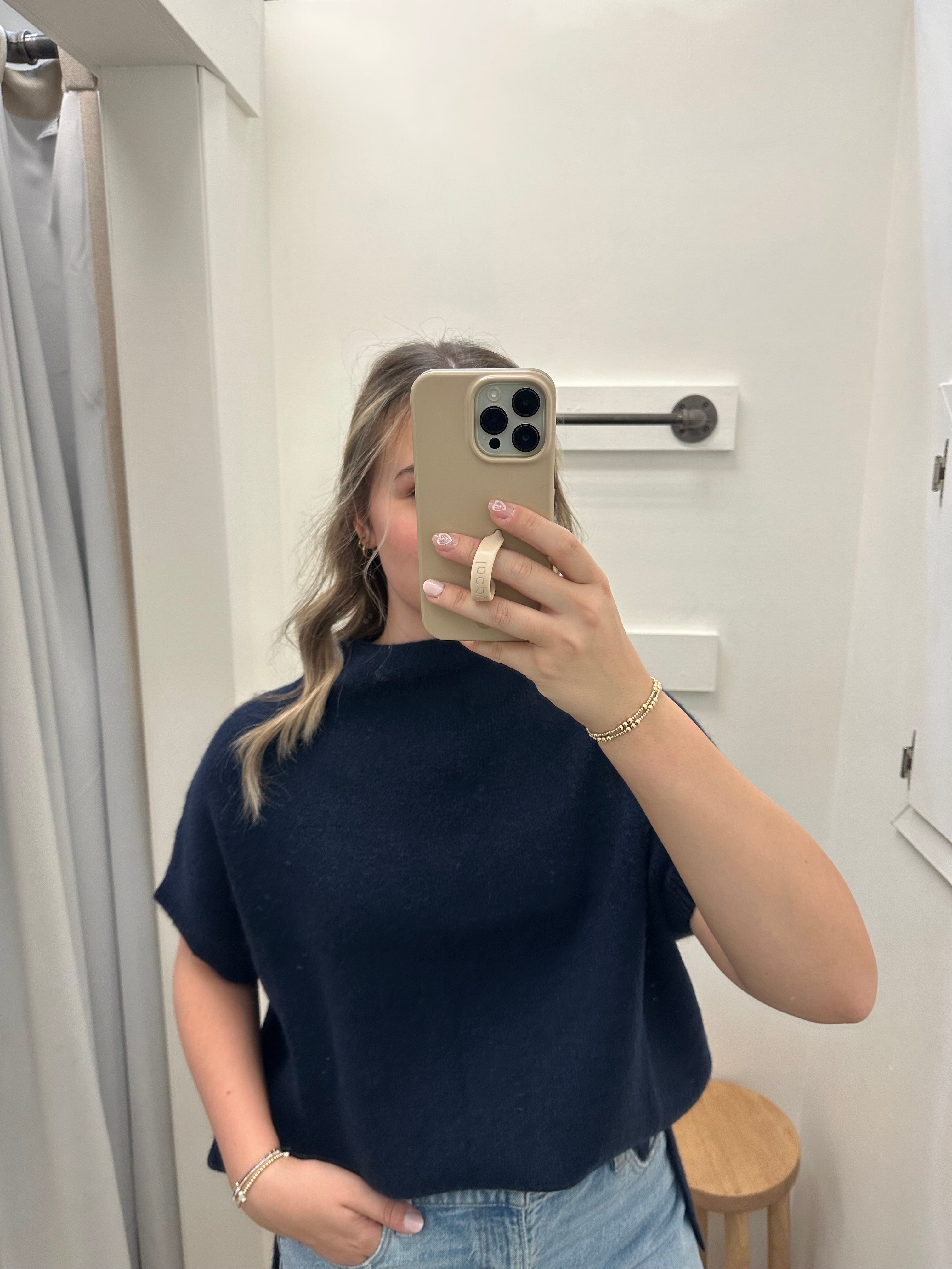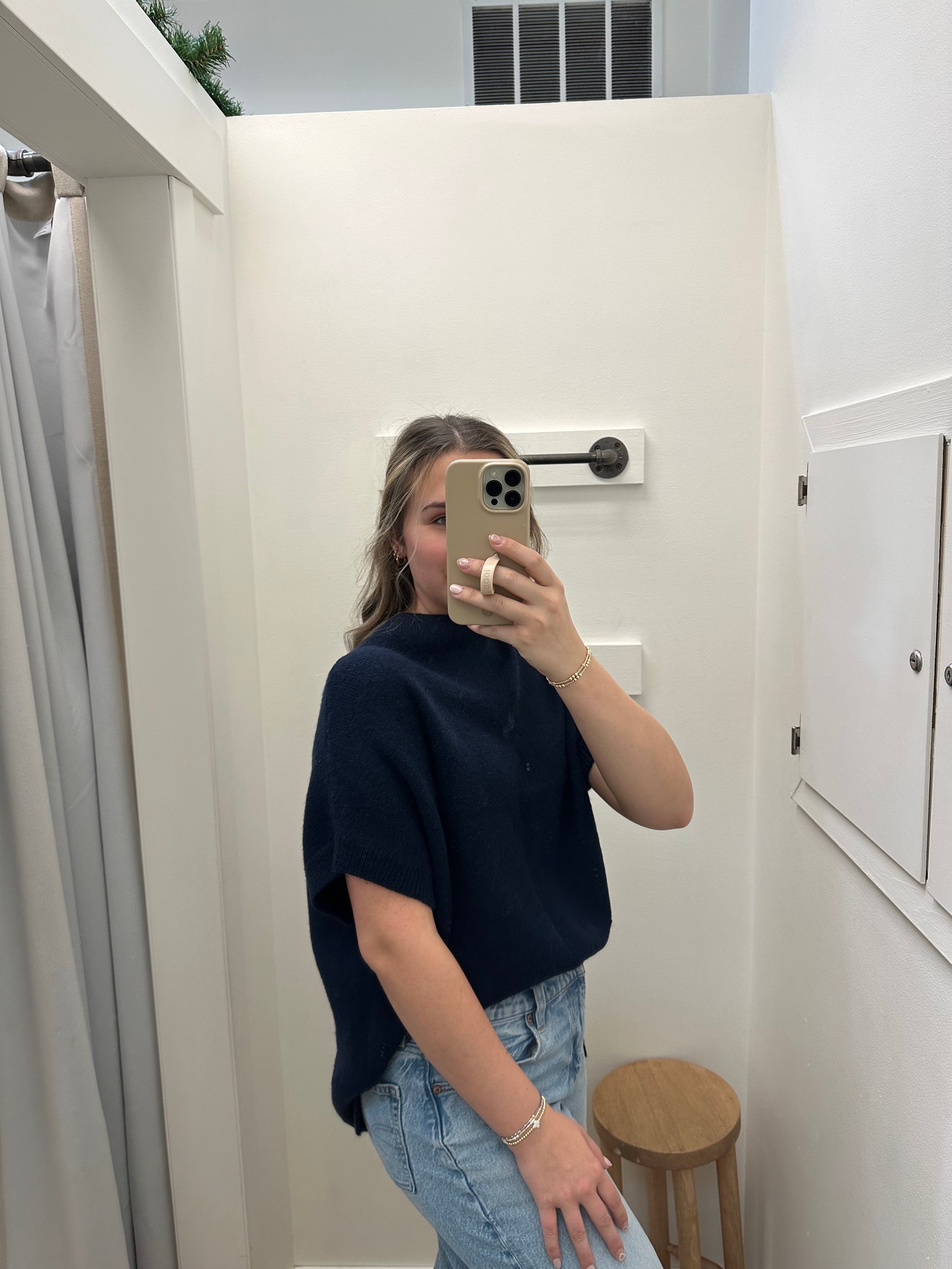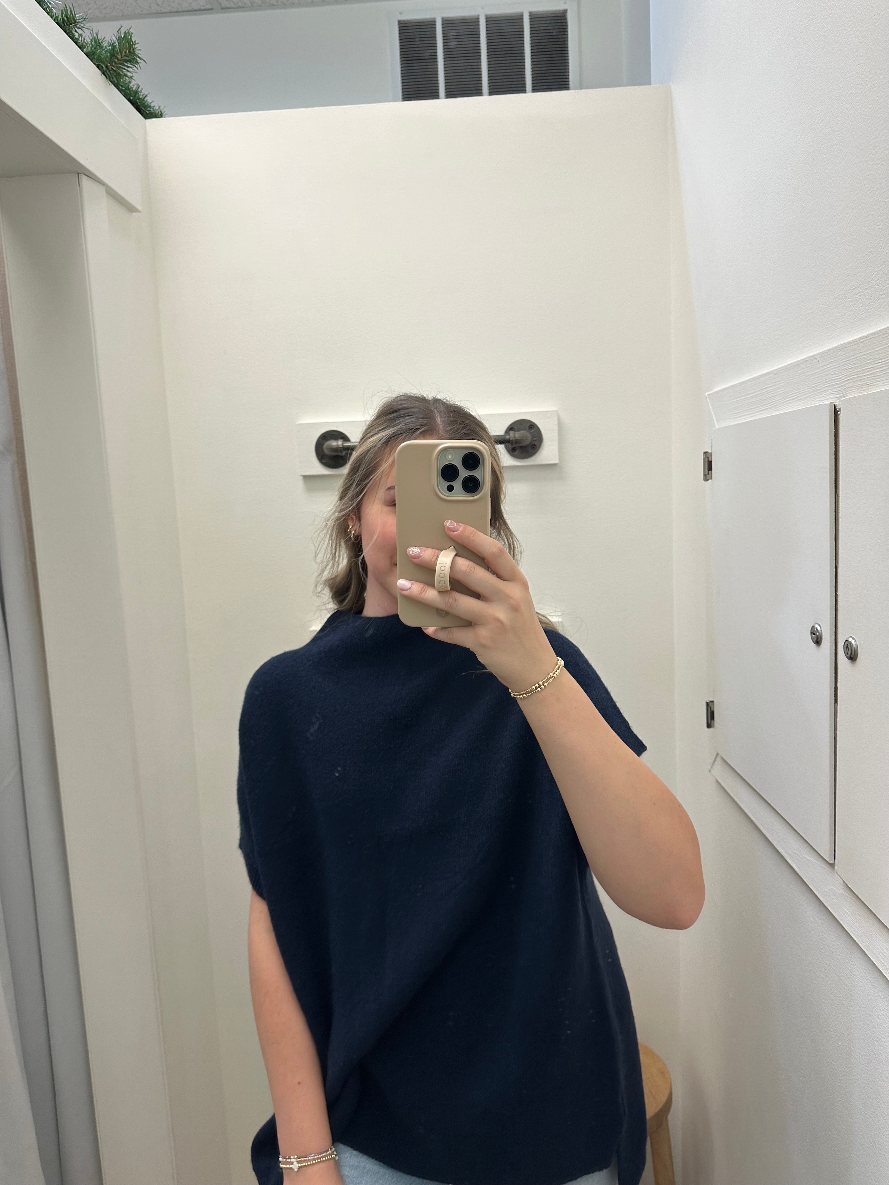 This sleeveless knit sweater vest combines 45% viscose, 40% nylon, and 15% polyester for a soft, durable, and comfortable fit. Perfect for layering, it offers both style and versatility in a deep navy shade.