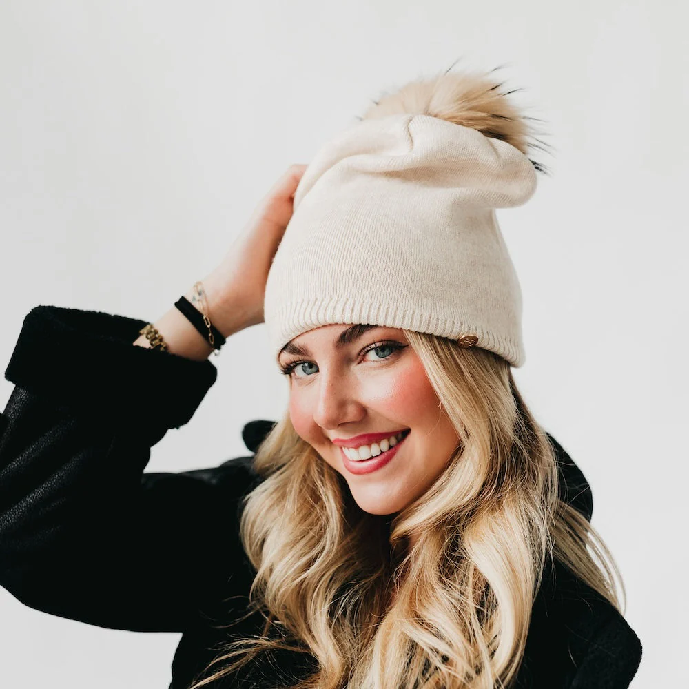 The softest beanie you can find. This gorgeous hat will carry you through the colder months in style. Fur pom is removable. Slouchy fit.