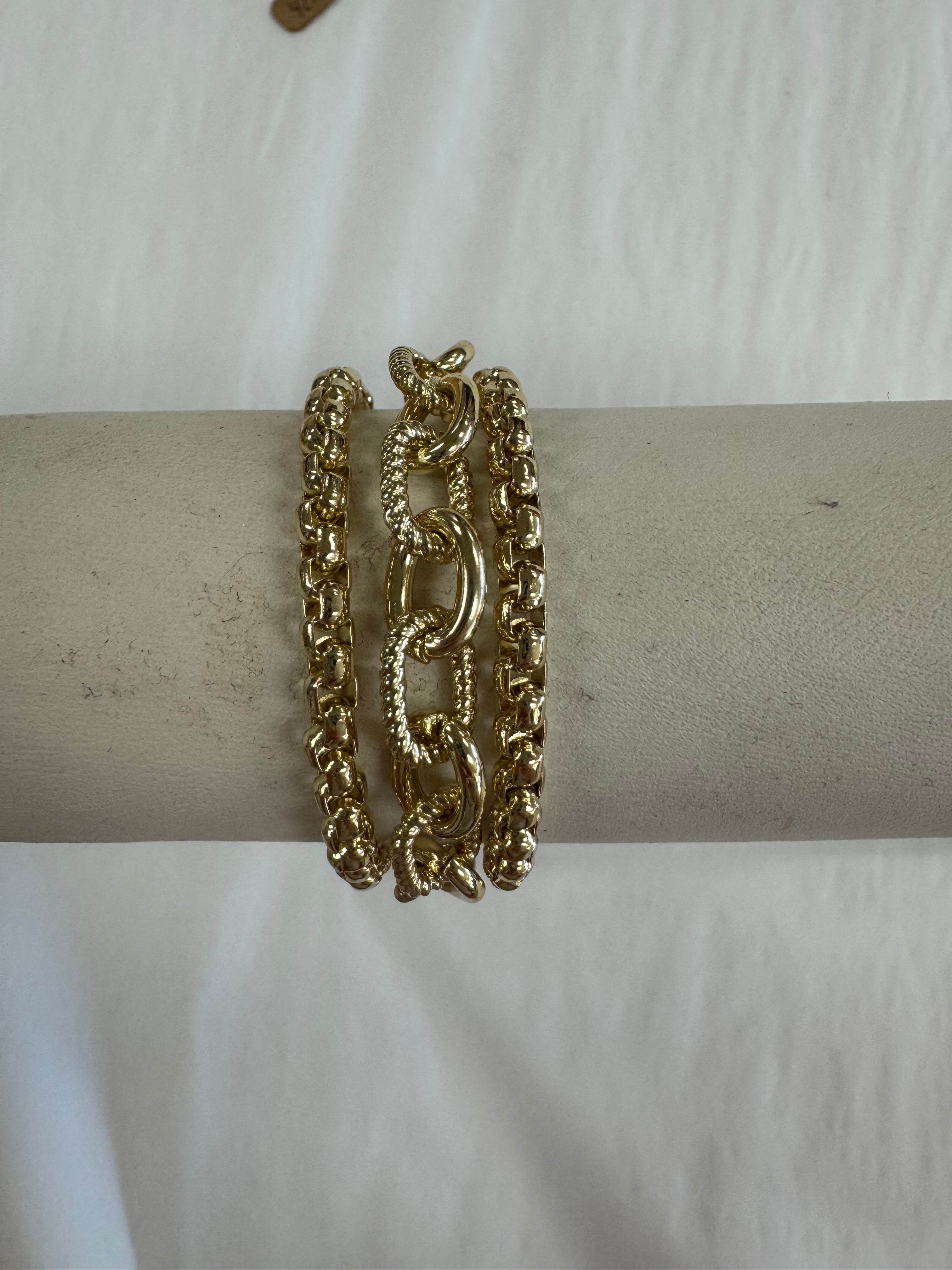 Elevate your everyday style with this stunning Gold Triple Chain Magnetic Bracelet. Featuring three delicate chains interwoven in lustrous gold, this piece combines timeless elegance with modern appeal. The integrated magnetic clasp ensures a secure, effortless fit while adding a sophisticated touch to any wrist. Whether layered with other bracelets or worn solo, this versatile accessory transitions seamlessly from casual days to special occasions. Experience the perfect balance of beauty and functionality—a bracelet that's as reliable as it is radiant.