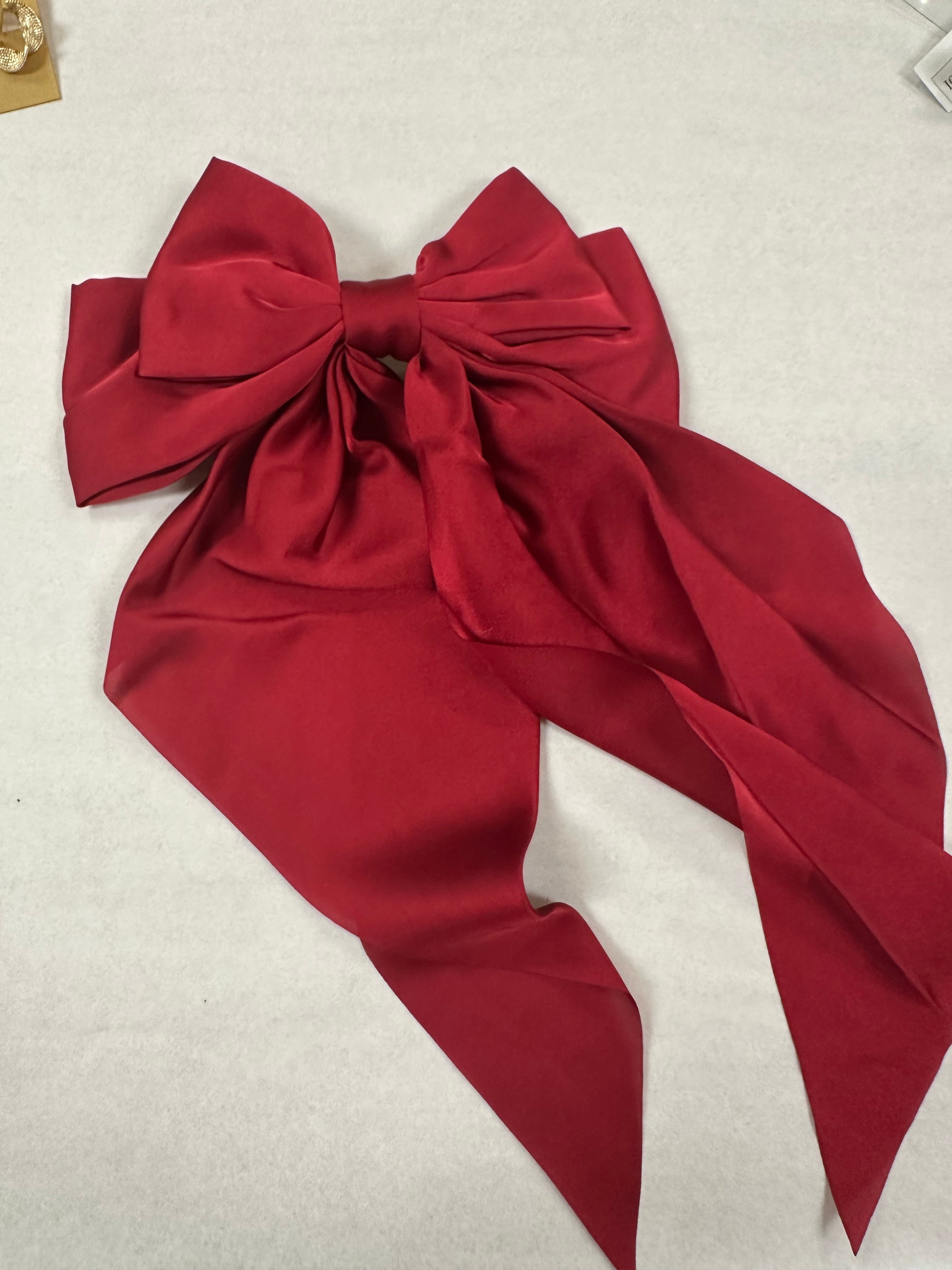 Elevate your holiday look with this luxurious silk bow hairpiece in rich wine red. Crafted from premium silk material, this elegant accessory adds instant sophistication to any festive hairstyle. The deep, jewel-toned hue complements a variety of skin tones and outfits, making it perfect for holiday parties, special occasions, or everyday glamour. Easy to secure and versatile in styling, this hairpiece transforms your appearance in seconds. Whether you're attending a gala or celebrating with loved ones, this statement bow brings timeless elegance and refined beauty to your ensemble.
