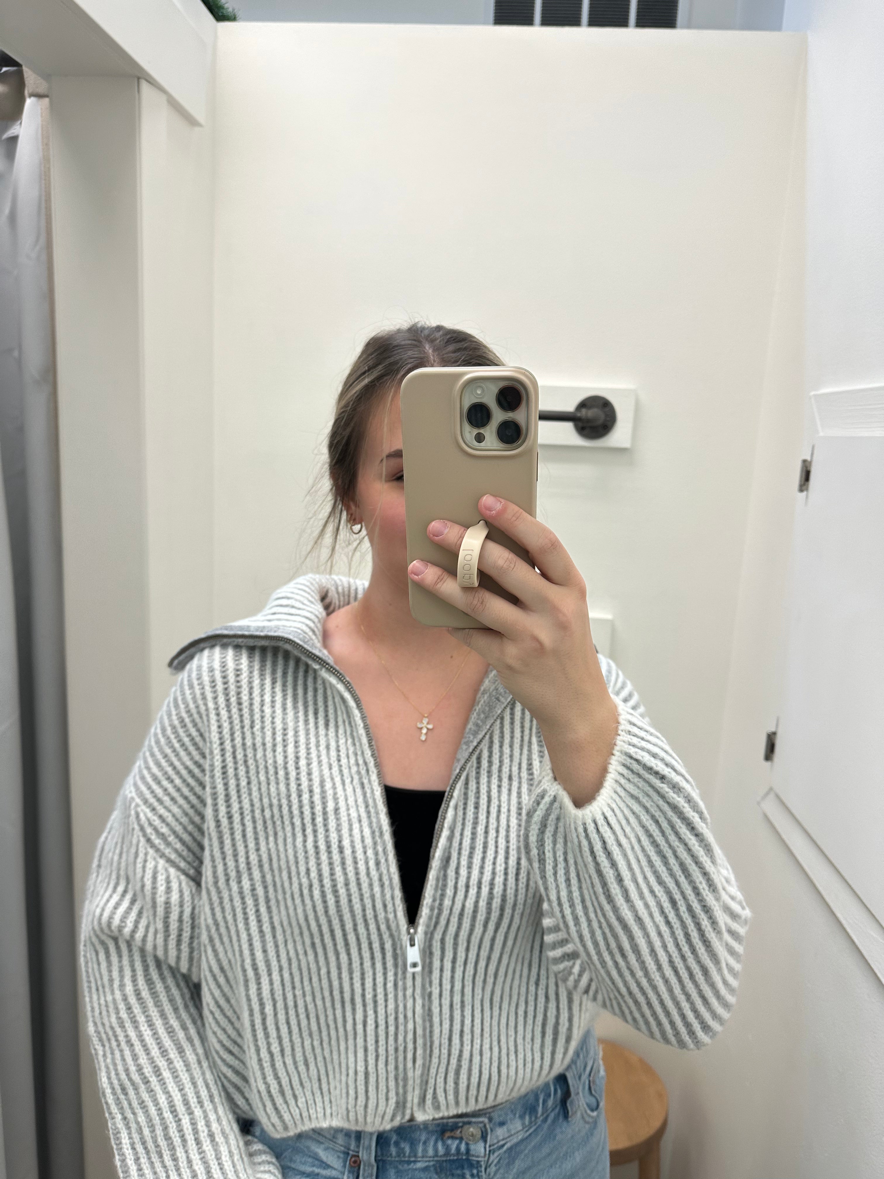 Experience cozy style with the Mavi striped sweatshirt featuring a full zip and classic collar.