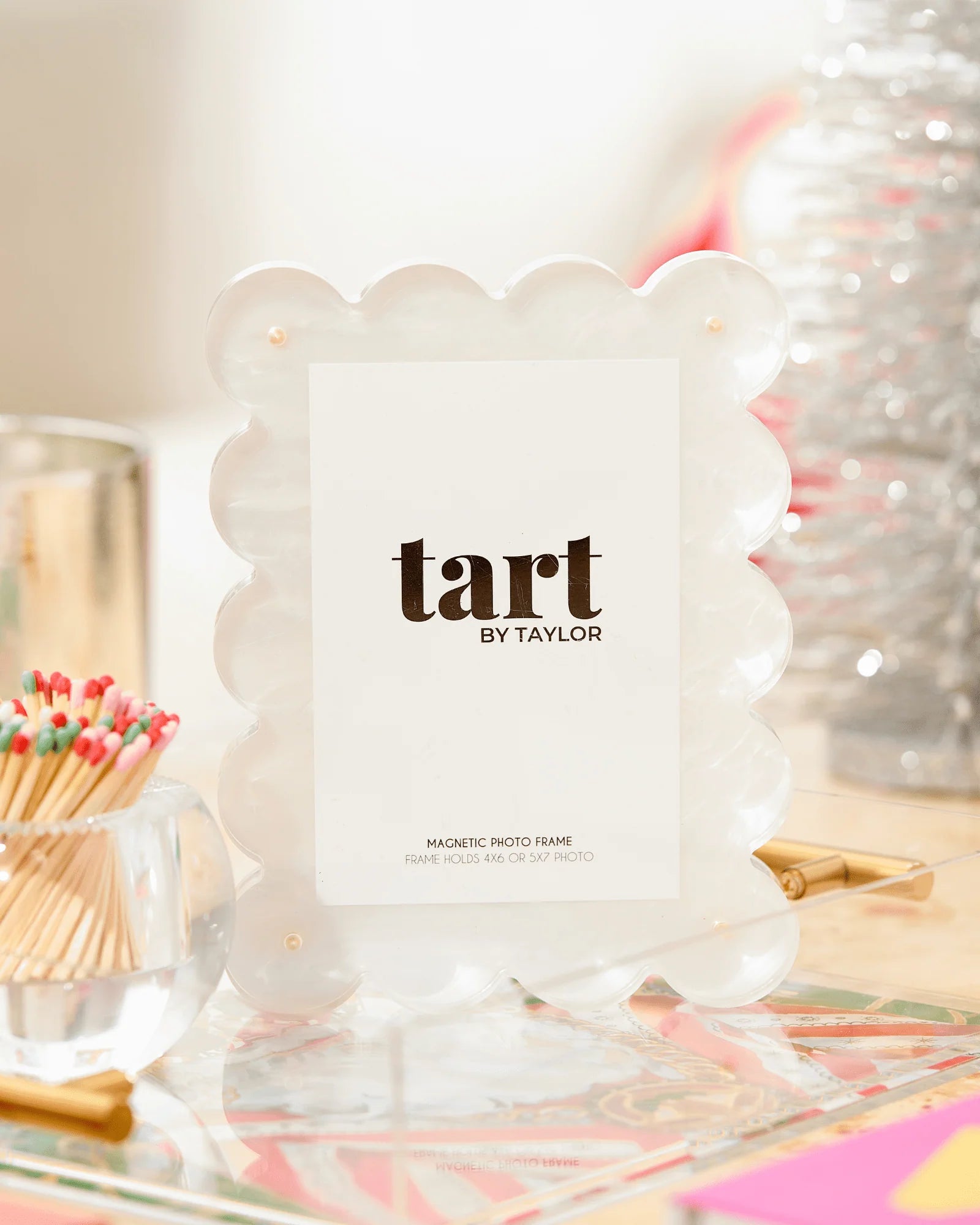 Display your favorite photos in style with this acrylic picture frame! It features a magnetic border to securely hold your cherished pictures as well as adding a stylish touch. Perfect for giving your home a fun and unique look! The magnets are strong enough to hold various items like tickets, invitations or dried flowers, making for the perfect keepsake 🤩