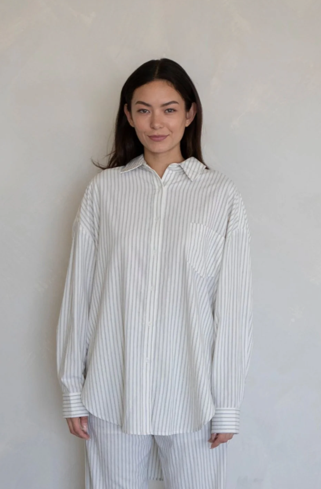 Effortlessly elevate your everyday style with the Wren Top, a timeless striped button-up designed for modern comfort. The oversized silhouette drapes beautifully, offering flattering coverage while maintaining a relaxed, put-together aesthetic. Classic black and white stripes work with virtually everything in your wardrobe, making this versatile piece a go-to for casual outings, office settings, or weekend adventures. Soft fabric and quality construction ensure lasting wear season after season.